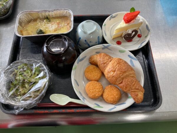クリスマスメニュー:グラタン・チキンナゲット・トマトスープ・クロワッサン美味しかったね😋