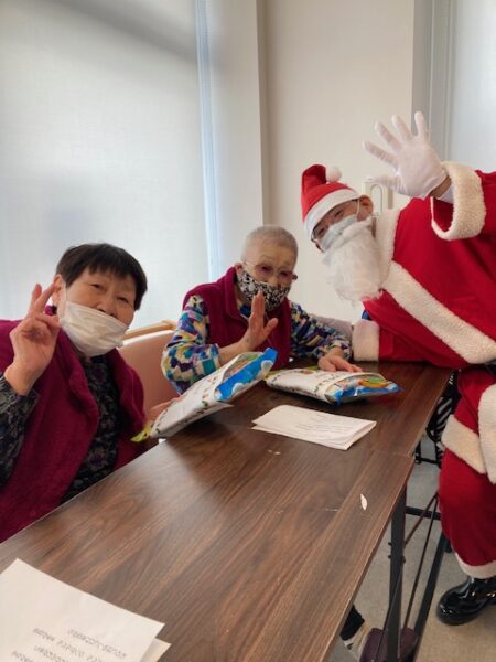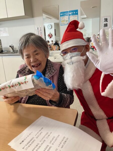 サンタさんとハイ・チーズ📷プレゼントのお菓子をもらい大喜び😍