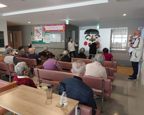 1月11日新年お楽しみ会では正月由来にちなんだ「正月クイズ」や「福笑い」を行い大変盛り上がりました。